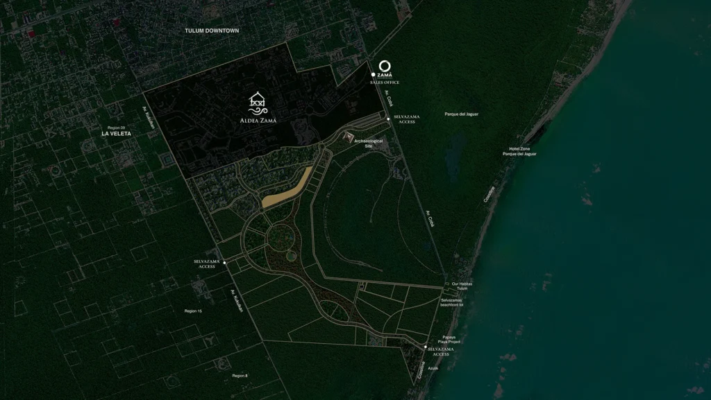 - Prime Location: With our strategic location within Tulum and access to the coastline at the entrance from Coba Avenue, the main avenue that connects downtown with the hotel zone of Tulum, Selvazama guarantees the highest appreciation value in the region. Our master plan includes roads with access to the main avenues, setting the stage for unparalleled growth and prosperity.
